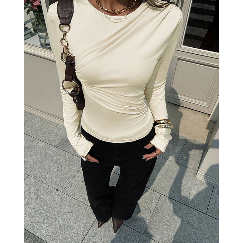 Women's Blouse Dressy Tops Plain Elegant Vintage Daily Long Sleeve Crew Neck Regular Tops Work Daily Holiday Ruched Draped Apricot Fall Winter