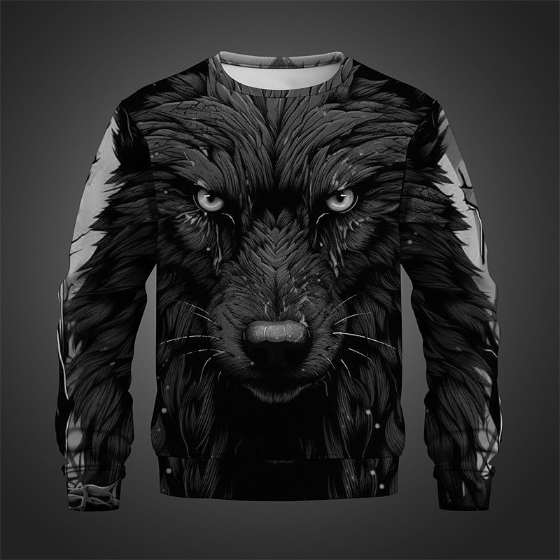 Men's Animal Wolf Sweatshirts Sweatshirt Pullover Long Sleeve Sweatshirt Crew Neck 3D Subculture 3D Print Vacation Holiday Going out 3D Print Spring Fall
