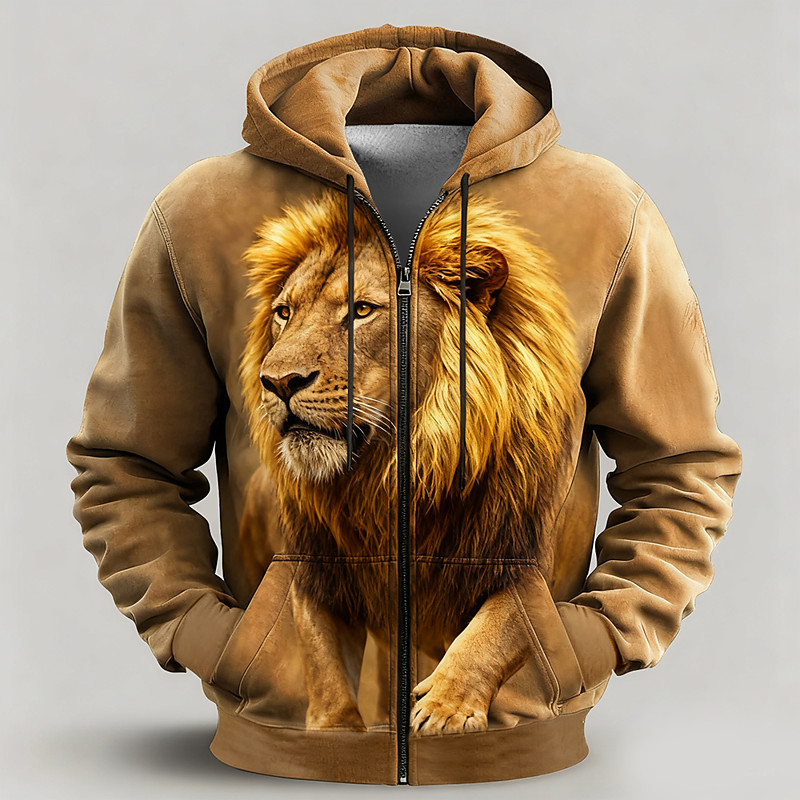 Men's Lion Tiger Hoodie Jacket Sweatshirt Fantasy All Over Print Zip Vacation Going out Streetwear Brown Brown 2 Brown 3 Zipper Fall Winter Designer S M L XL XXL XXXL