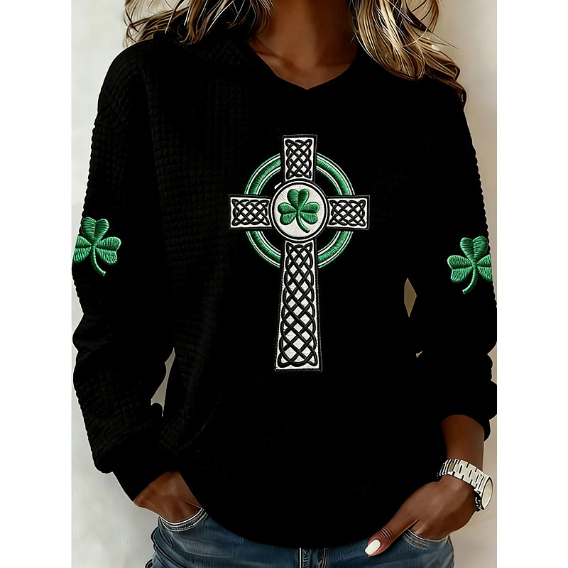 Women's Pullover Hoodie Sweatshirt Graphic Shamrock Warm Casual Print Long Sleeve Hooded Regular Tops Casual Street Dailywear Print Black White Green Fall Winter