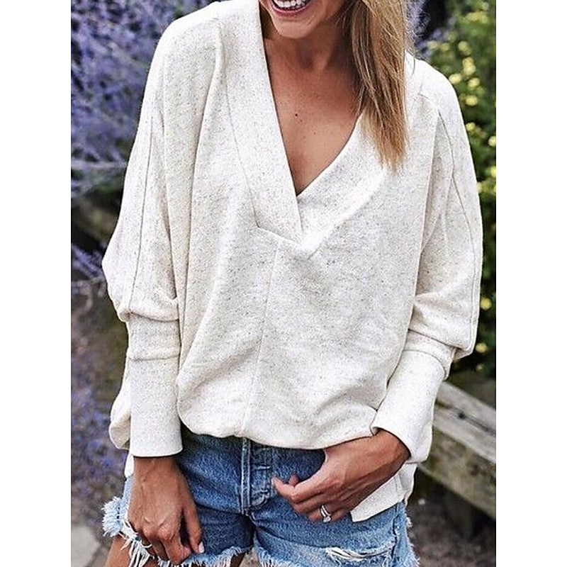 Women's Blouse Print Casual Long Sleeve Bishop Sleeve V Neck Regular Tops Daily Blue White Pink Green Spring Fall
