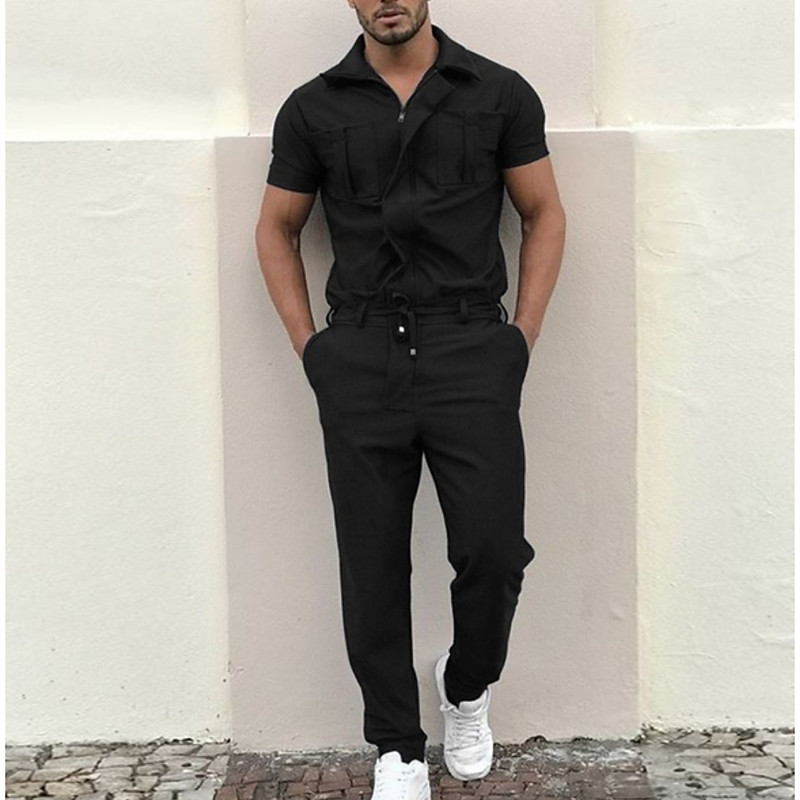 Men's Cargo Pants Work Pants Jumpsuit Rompers Solid Color Nightclub Streetwear Stylish Casual / Sporty Slim Black Wine