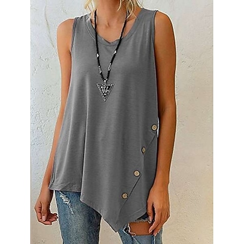Damen Camisole-Tanktop Einfarbig Täglich Stilvoll Basic Ärmellos Rundhalsausschnitt Lange Oberteile Täglich Knöpfe Schwarz Weiß Wein Grau Sommer Frühling