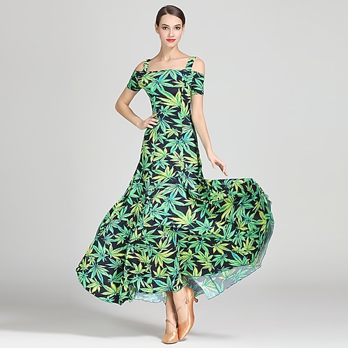 Balli da sala Abito Drappeggio A fantasia / stampa Per donna Addestramento Prestazioni Manica corta Alto Seta sintetica