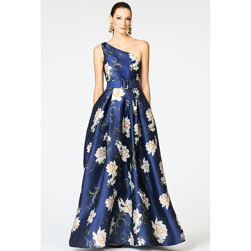 A-Line Floor Length Evening Gown Ball Gown Formal Dress Elegant Sleeveless One Shoulder Formal Wedding Guest Pocket Satin with Floral Print Slit Pocket