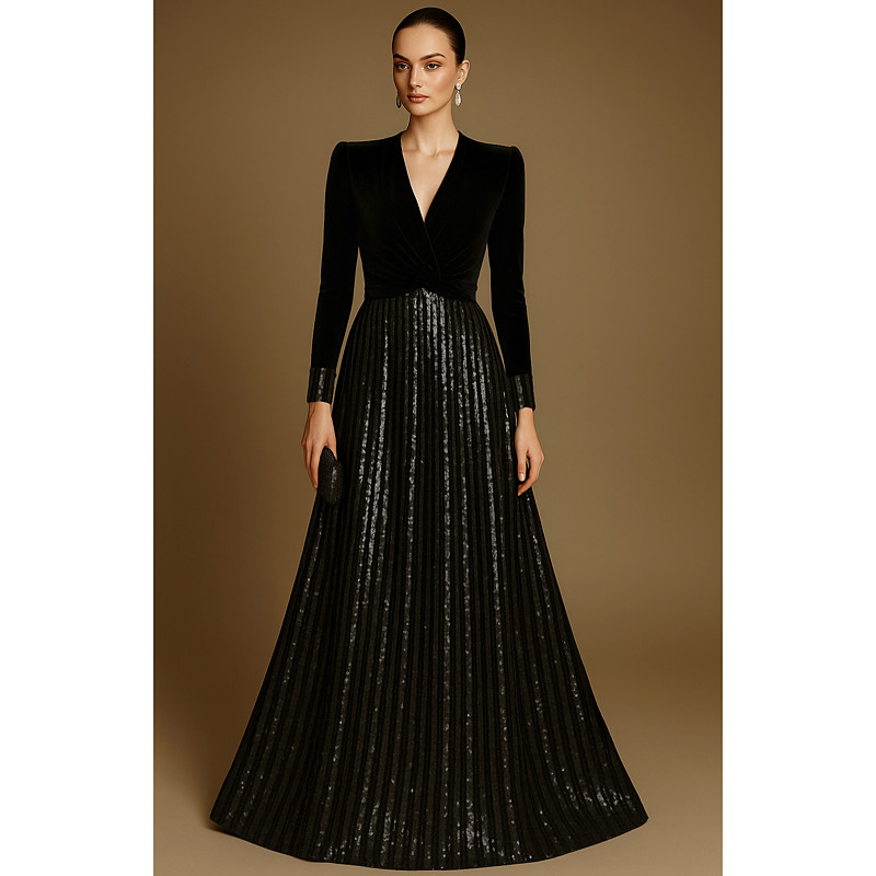 A-Line Floor Length Beaded Eembroidered Formal Dresses Mother of the Bride Dress Evening Gown Ball Gown Formal Dress Elegant Glittering Long Sleeve V Neck Wedding Formal Sequined Velvet with Glitter