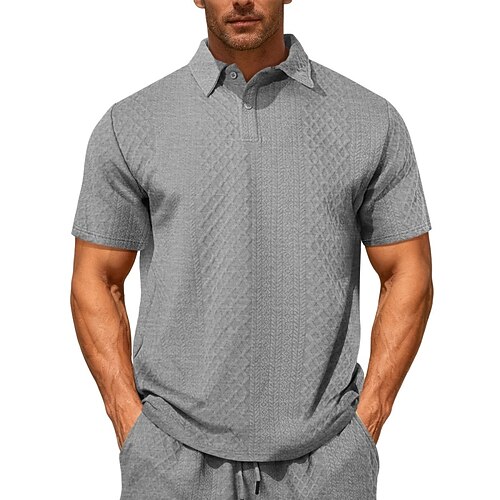 Per uomo Polo Testurizzato Casuale Affari Colletto Polo a Coste Manica Corta Moda Essenziale Tinta unica Jacquard Bottoni Estate Primavera Autunno Vestibilità comoda Blu Rosso scuro Nero Bianco Blu