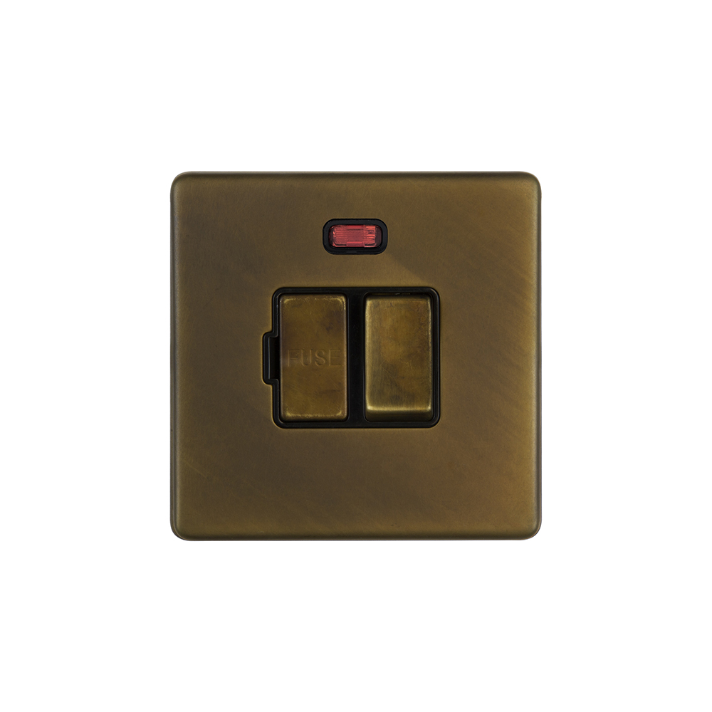 Soho Lighting Vintage Brass 13A Double Pole Switched Fused Connection Unit (FCU) With Neon