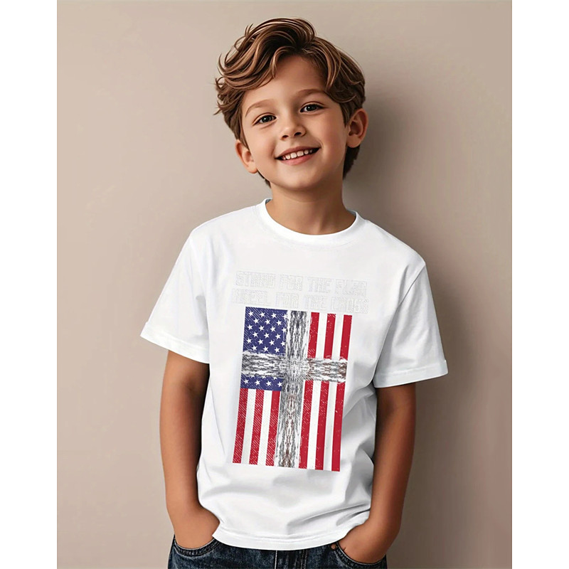 American Independence Day Boys' 3D Flag T shirt Tee Short Sleeve Summer Spring Fashion Basic Kids 4-12 Years Crew Neck Outdoor Casual Daily Regular Fit