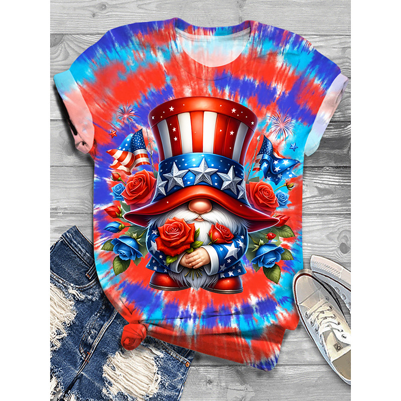 American Independence Day Women's T Shirt Graphic Butterfly American Flag Vintage Stylish Casual Short Sleeve Crew Neck Regular Tops Daily Weekend Print Blue White Red Summer Spring