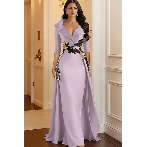 Per donna Abito da smoking Linea ad A Matrimonio Formale Ospite di nozze Raso Elegante Manica 3/4 Lunghezza al pavimento Bavero Cerniera