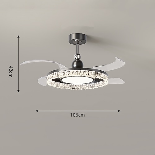 Ventilatori da soffitto a LED dimmerabili con telecomando, lampada da soffitto a filo da 106 cm, paralume in acrilico, lampadario, camera da letto, soggiorno