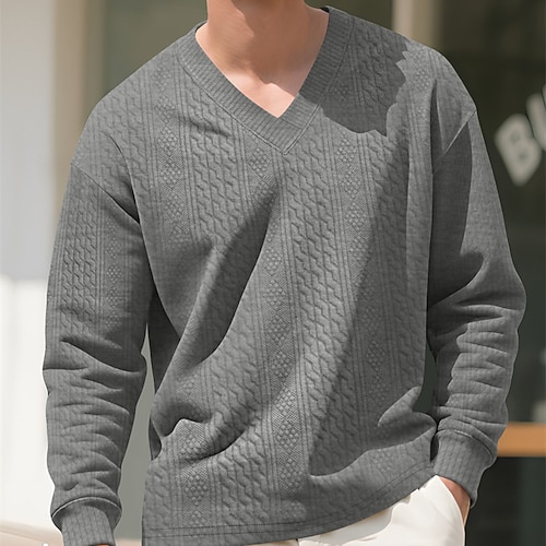 Herren T Shirt T-Shirt Langarmshirt Langarm V Ausschnitt Frühling Herbst Einfarbig Mode Streetwear Lässig Jacquard Outdoor Urlaub Straße Schwarz Weiß Marineblau Top T-Shirt für Herren