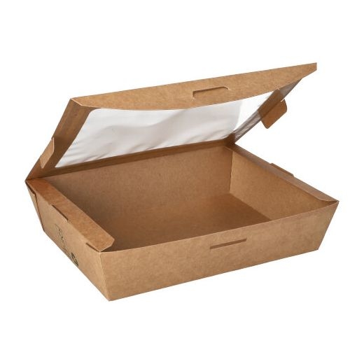 Papstar Feinkostbox mit Sichtfenster, "pure", braun, 1000 ml, 18 x 13 x 4,5 cm, 160 Stück