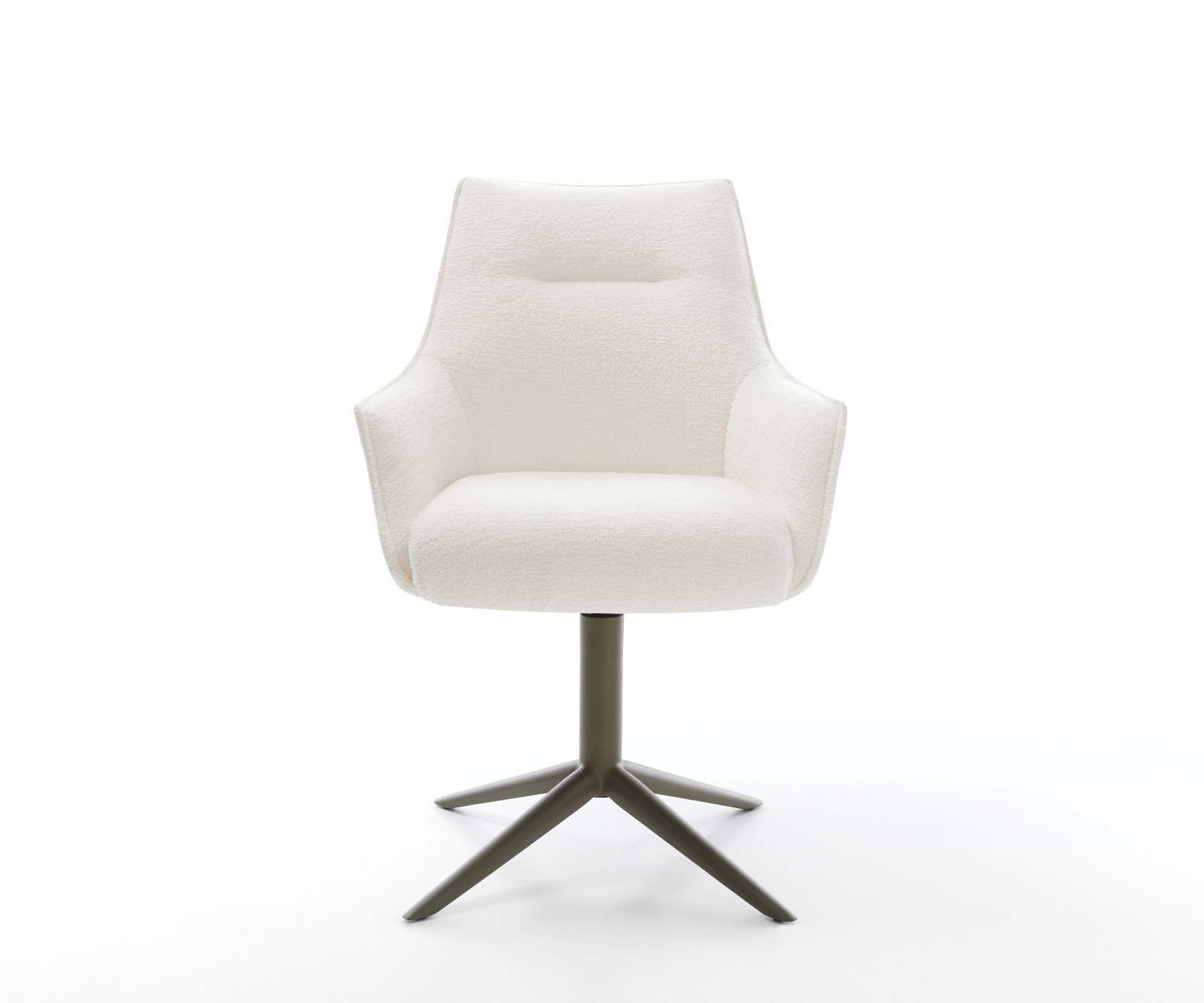 DELIFE Draaistoel Alja-Flex met armleuning bouclé zacht beige kruispoot afwerking met titanium 360° draaibaar rocker-functie pocketveer kern