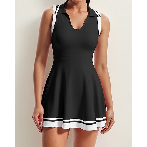 Per donna Patchwork Abito da tennis Petit Abito da tennis con pantaloncini Abito sportivo Senza Maniche Tasca Elastico Traspirante Tennis Corsa Fitness Scollo a V Vestito Nero Giallo Rosa
