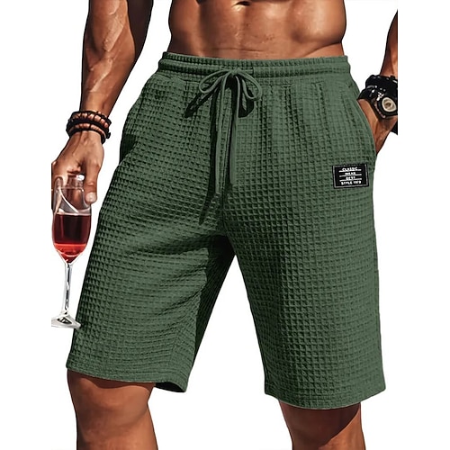 Per uomo Pantaloncini Waffle Shorts Pantaloncini casual Tasca Elastico in vita Semplice Comodità Traspirante Lunghezza al ginocchio Casuale All'aperto Vacanza Vacanza Moda Nero Bianco Micro-elastico