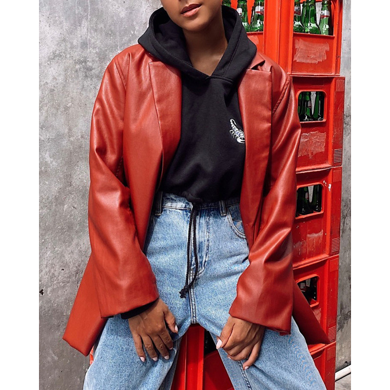 Women's Faux Leather Jacket Biker Jacket Comfortable Pocket Full Zip Fashion Street Style Plain Outdoor Casual Daily Regular Stand Collar Regular Fit Long Sleeve Outerwear Black Champagne Red Spring