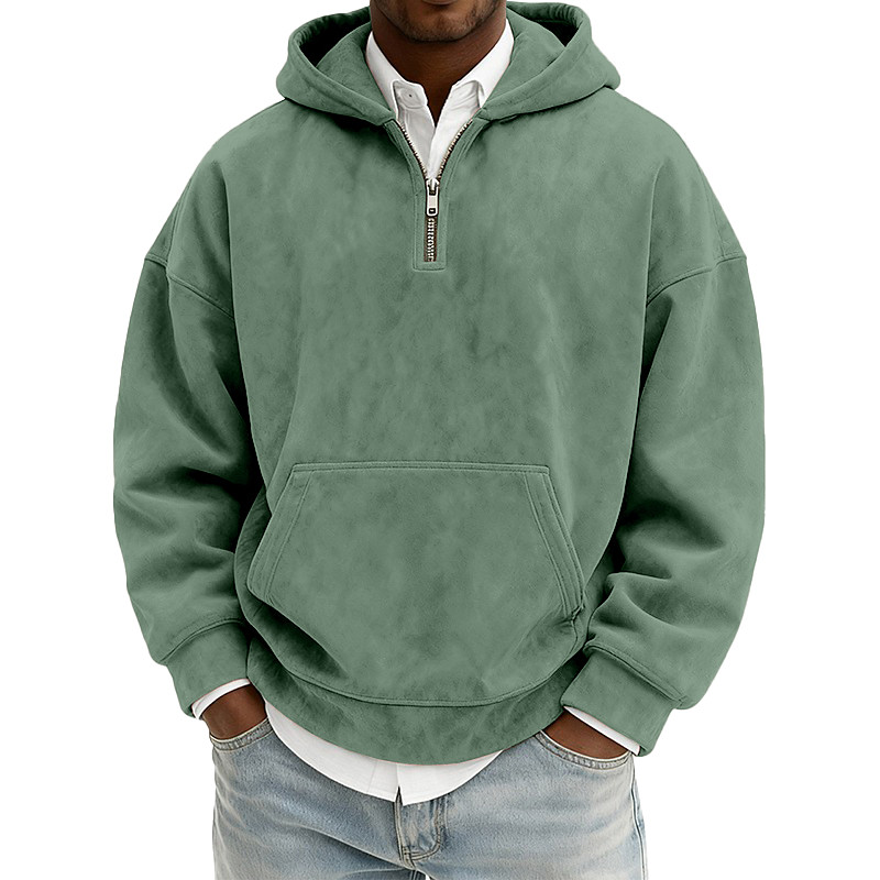 Men's Hoodie Pullover Hoodie Sweatshirt Quarter Zip Hoodie Wine Red Black Light Green Pink Army Green Hooded Plain Kangaroo Pocket Casual Daily Sports Outdoor Vintage Streetwear Cool Spring Fall