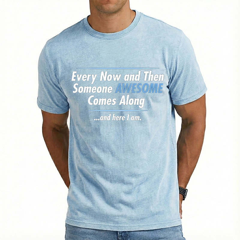 Funny Gift For Men Every Now and Then Someone AWESOME Comes Along and here I am Washed Distressed T Shirt Humorous Sarcastic Quote Tee Clothing Apparel S M L XL XXL XXXL
