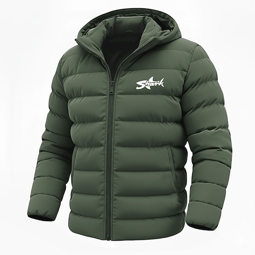 Herren Hai Mit Buchstaben bedruckt Wintermantel Daunenjacke Thermowarm Regenfest Leicht Lässig Outdoor Täglich Wattierte Steppjacke mit Kapuze Herbst Winter Langarm Schwarz Rote Königliches Blau