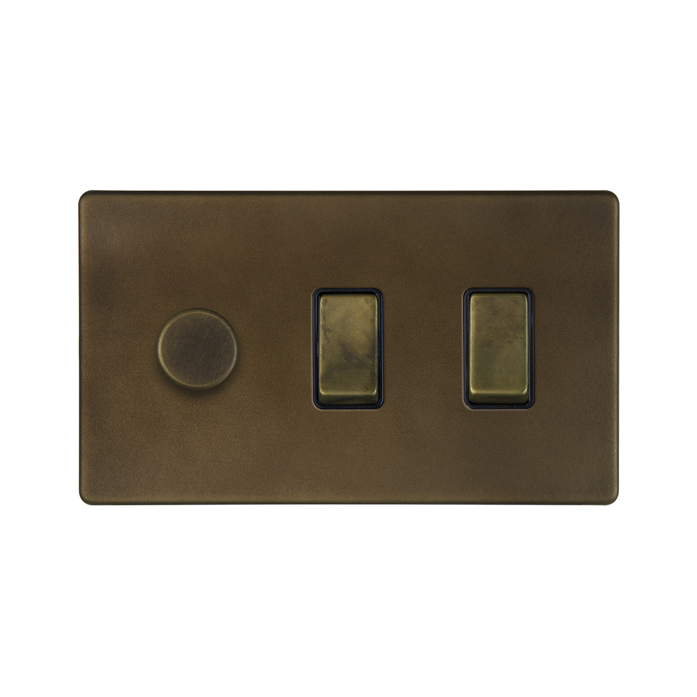 Soho Lighting Vintage Brass 3 Gang Dimmer and Rocker Switch Combo (2-Way Intelligent Dimmer & 2 x 2-Way Light Switch)