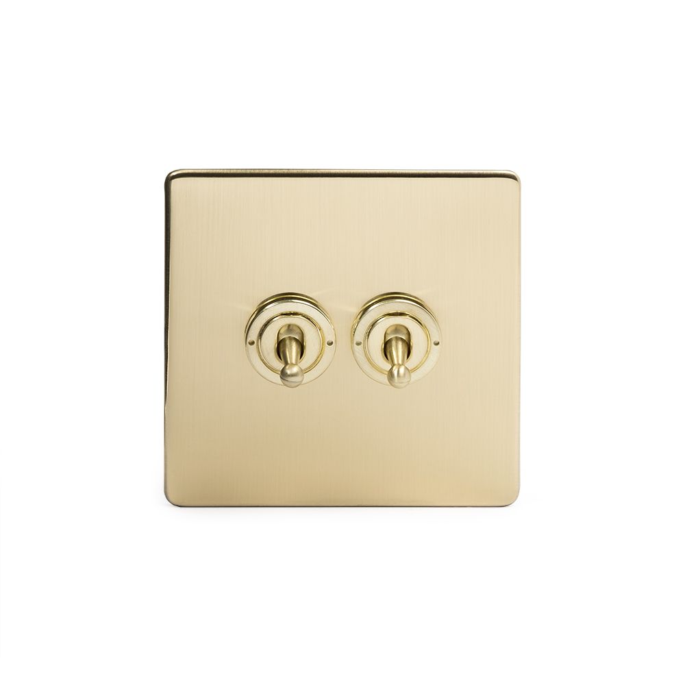 Soho Lighting Brushed Brass 2 Gang Retractive Toggle Switch Screwless - Size: H 86mm X W 86mm