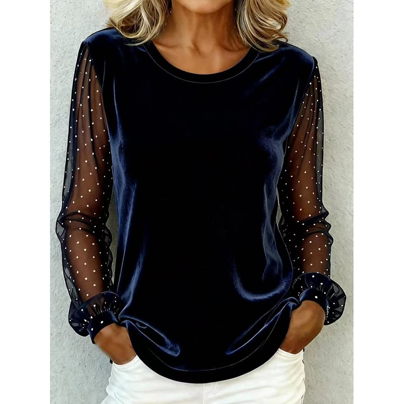 Women's Velvet Stylish Basic Long Sleeve Regular Tops Blue Black Pink Wine Gold Fall Winter