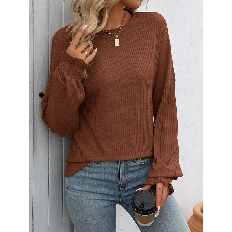 Women's Blouse Solid Color Stylish Casual Long Sleeve Crew Neck Regular Tops Daily Black Army Green Brown Green Khaki Spring Fall