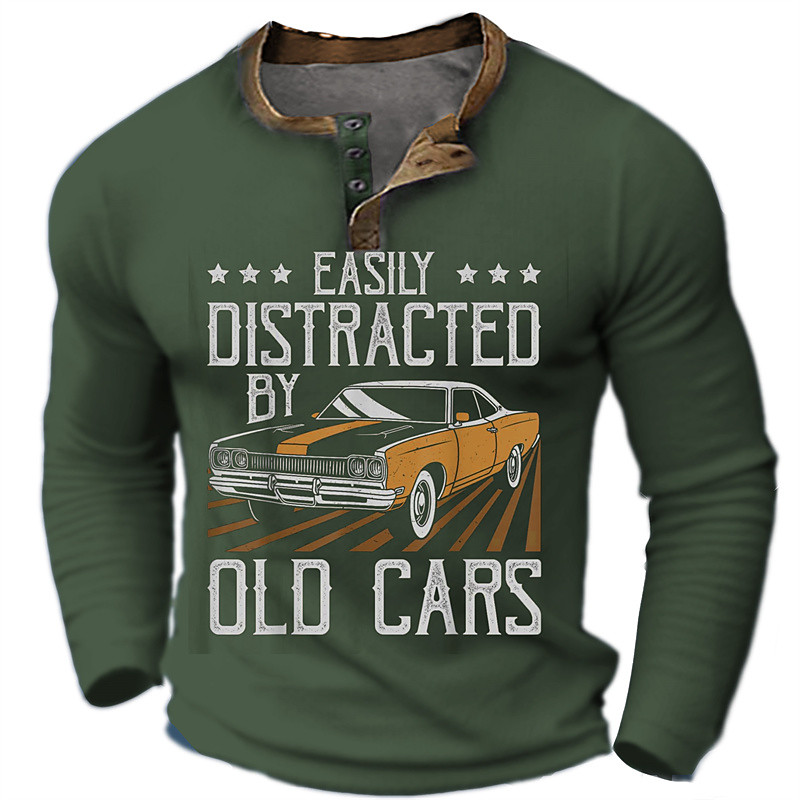 Men's Graphic Car Letter Henley Shirt Long Sleeve 3D Print Fashion Daily Casual Casual Holiday Going out Spring Fall Army Green Dark Blue Henley Henley T-Shirt