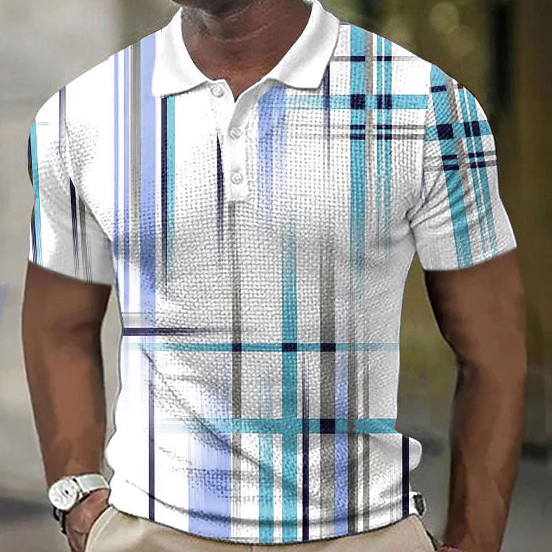 Men's Plaid Waffle Polo Shirts Golf Shirt Short Sleeve Polo Shirts Collared Shirts Vintage Casual Vacation Wear Formal Wear Festival Wear 3D Print Buttons Blue Wine Brown