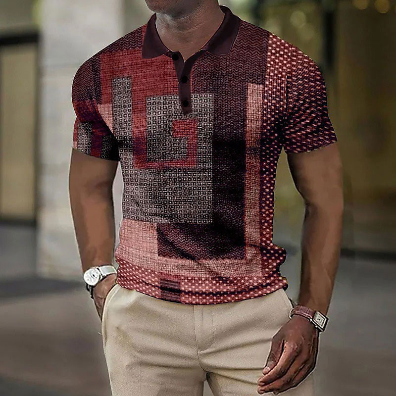 Men's Geometric Polo Shirts Golf Shirt Short Sleeve Polo Shirts Collared Shirts Business Casual Vacation Wear Formal Wear Festival Wear Buttons 3D Print Summer Wine Red Blue