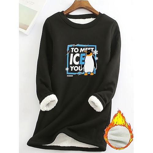 Damen Sweatshirt-Pyjama mit Fleecefutter Pullover Sweatshirt Pullover Sweatshirts Tiermotiv Buchstabe Warm Streetwear Lässig Langarm Rundhalsausschnitt Lange Oberteile Heim Alltagskleidung Lässig