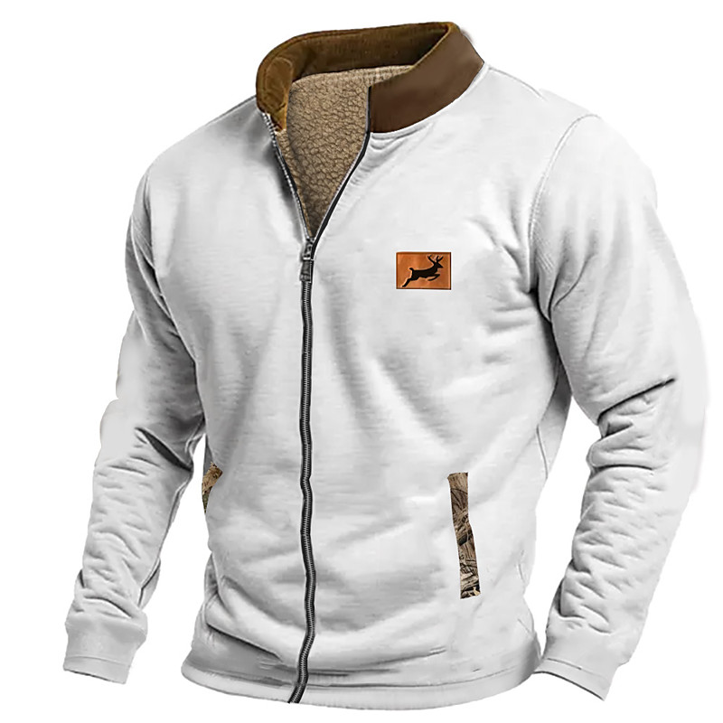 Men's Deer Sweatshirt Sweatshirt Zip Sweatshirt Long Sleeve Sweatshirt Stand Collar Zip Fashion Daily Simple Print Vacation Holiday Going out Pocket Front Zipper Winter
