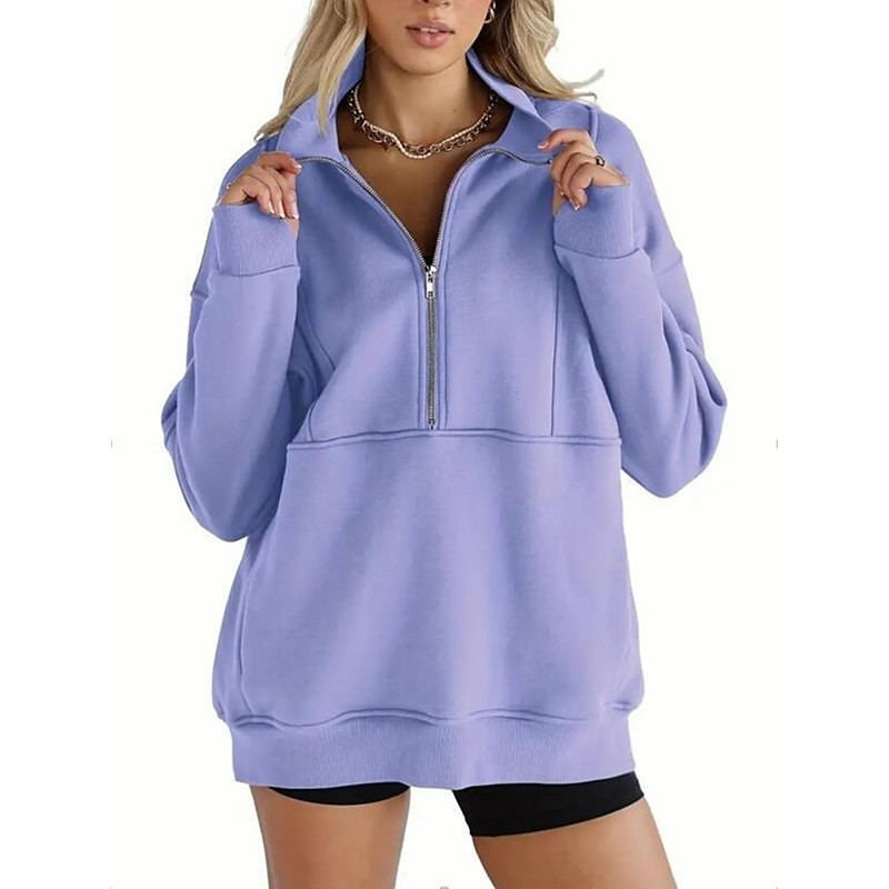 Women's Casual Sweatshirt Pullover Hoodie Quarter Zipper Long Sleeve Top Athleisure Fall Solid Colored Fashion Outdoor Travel Sportswear Activewear Black Light Green Purple