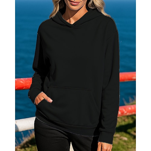 Per donna Felpa pullover Felpa con cappuccio Manica Lunga Top Athleisure Autunno Tinta unita Protezione Solare Antivento All'aperto Jogging Corsa abbigliamento sportivo Abbigliamento sportivo Nero