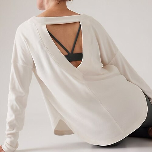 Per donna Magliette da yoga Canotte da yoga T-shirt Fitness Girocollo Morbido Traspirante Senza schiena Manica Lunga Gli sport Tinta unica Top Per Palestra Corsa Fitness Abbigliamento sportivo