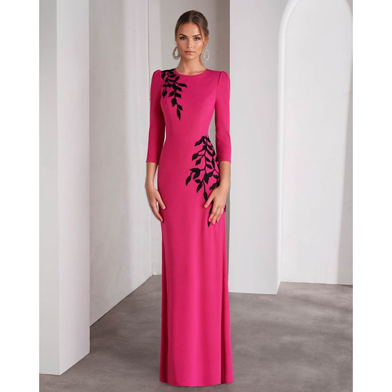 Mermaid Trumpet Floor Length Prom Dresses Evening Gown Ball Gown Formal Dress Elegant Color Block High Split 3/4 Length Sleeve Jewel Neck Wedding Formal Stretch Crepe with Embroidery Appliques
