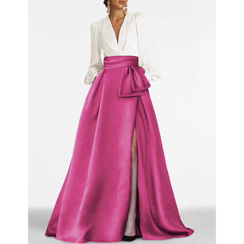 Mermaid Trumpet Floor Length Cocktail Dresses Prom Dresses Evening Gown Ball Gown Elegant Color Block Long Sleeve Shirt Collar Wedding Formal Satin with Bow(s)