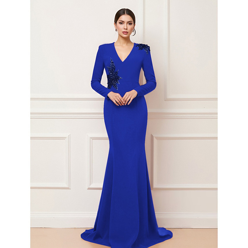 Mermaid Trumpet Sweep Brush Train Prom Dresses Evening Gown Ball Gown Formal Dress Elegant Celebrity Style Long Sleeve V Neck Wedding Formal Stretch Crepe with Embroidery