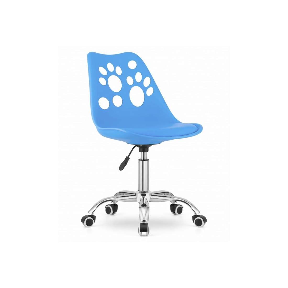 PRINT Stol Blå imiteret læder drejelig med krom base