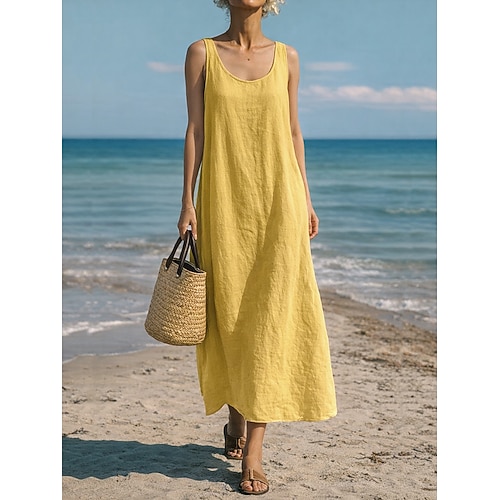 Per donna Abito maxi Finto cotone e lino Abito a Tubino Abito Estivo Abito Sottoveste Casual Spiaggia Quotidiano Vestibilità comoda Semplice Senza Maniche Collo a U Blu blu navy Giallo Rosso Estate