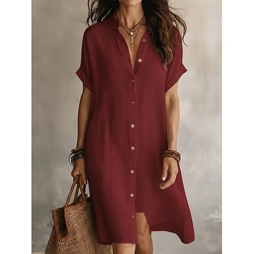 Per donna Mini Abito Finto cotone e lino Abito a Tubino Abito Estivo Casual Quotidiano Vestibilità comoda Semplice Manica Corta Bavero Blu Nero Vino Verde militare Estate Primavera Autunno