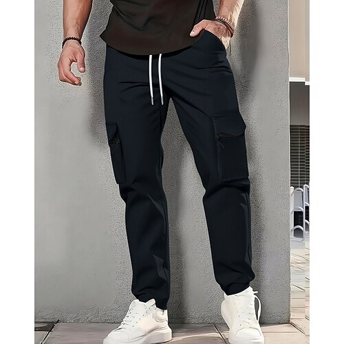 Herren Cargo-Hosen Jogginghose Jogger Hose Kordelzug Elastischer Bund Mehrere Taschen Einfach Winddicht Komfort Täglich Outdoor Campen und Wandern Streetwear Stilvoll Blau Schwarz