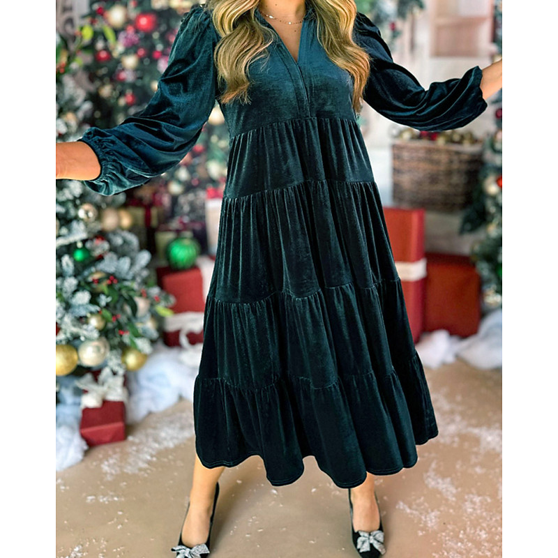Women's Midi Dress Velvet Dress Party Dress Cocktail Dress Elegant Fashion Modern Evening Party Party Regular Fit Plain Long Sleeve Shirt Collar Black Yellow Dark Green Dark Blue Fall Winter
