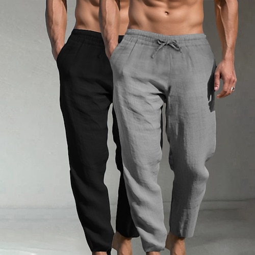 Per uomo Pantaloni di Lino Pantaloni Pantaloni Estivi Pantaloni da Spiaggia Coulisse Elastico in vita Semplice Comodità Traspirante Lunghezza intera Casa Casuale Quotidiano Moda Stile Classico Nero