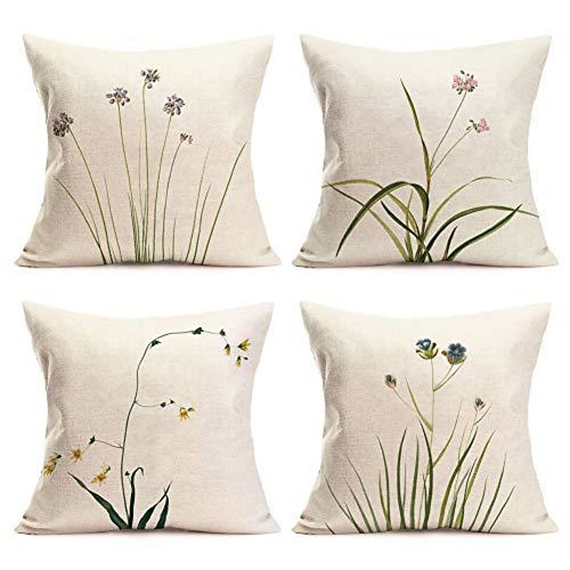 Vintage Floral Double Side Pillow Cover 4PC Soft Decorative Square Cushion Case Pillowcase for Bedroom Livingroom Sofa Couch Chair