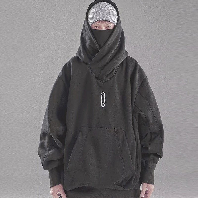 Ninja Double Neckline Cotton Pullover Techwear Harajuku Men Hoodie Hip Hop Streetwear Hoodies Sweatshirts Punk Gothic