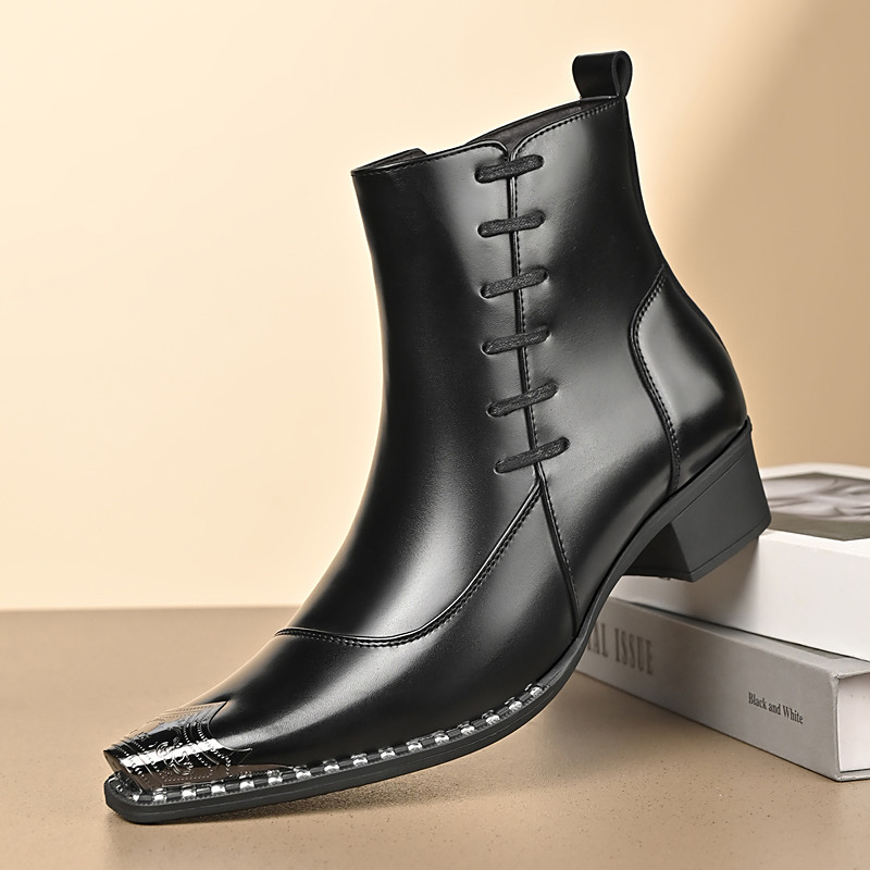 Men's Faux Leather Lace-Up Ankle Boots – Classic Formal Business Dress Shoes for Office and Evening Events