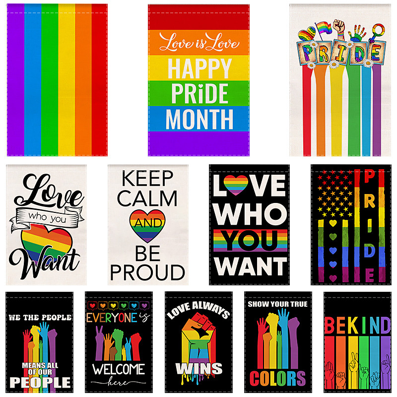 June Pride Month Rainbow Pride Month LGBTQ LGBT Garden Flags Set of 12 Double Sided 12x18Inch Yard Flags, Small Garden Flags for Outdoor Decoration Holiday Garden Flags for All Seasons Happy Pride